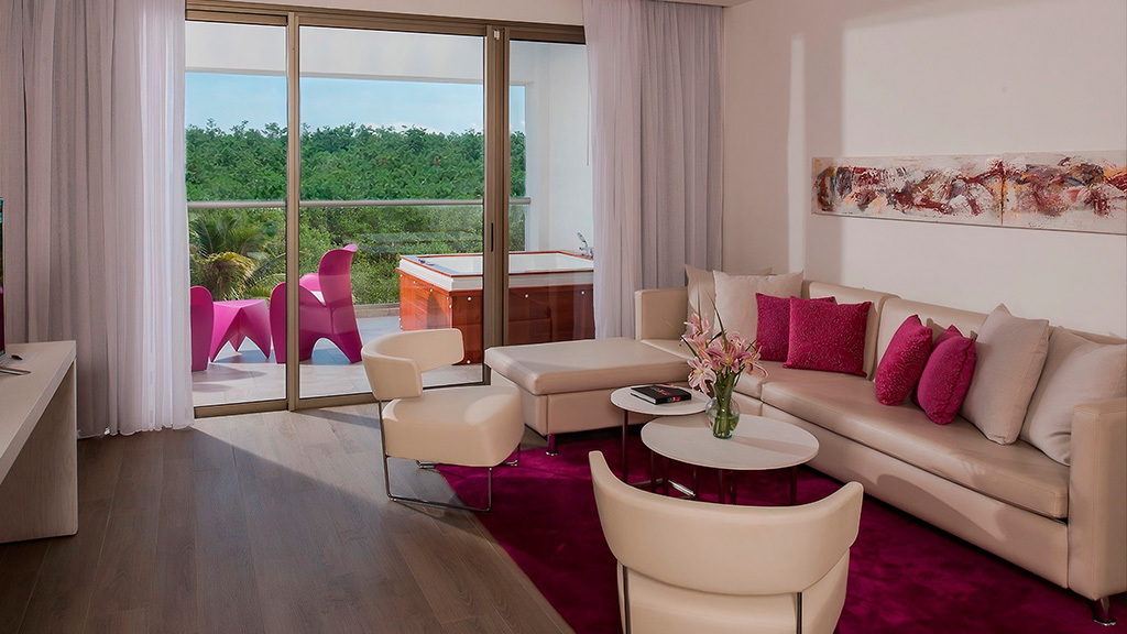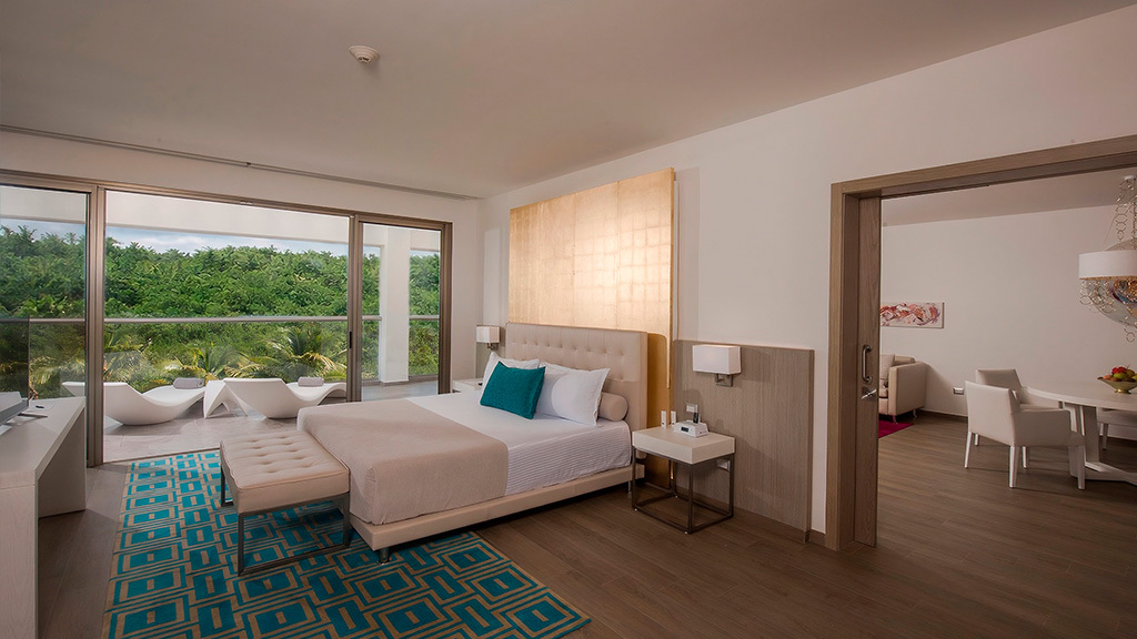 Two magnificent and extremely spacious rooms of 135m2 with stunning sea views. They feature a bedroom, a living room and a spectacular terrace with hot tub. What's more, these rooms include the benefits of the Platinum service. Discover our most select proposal for your dream holiday in the heart of Riviera Maya. *Maximum occupancy: three people.